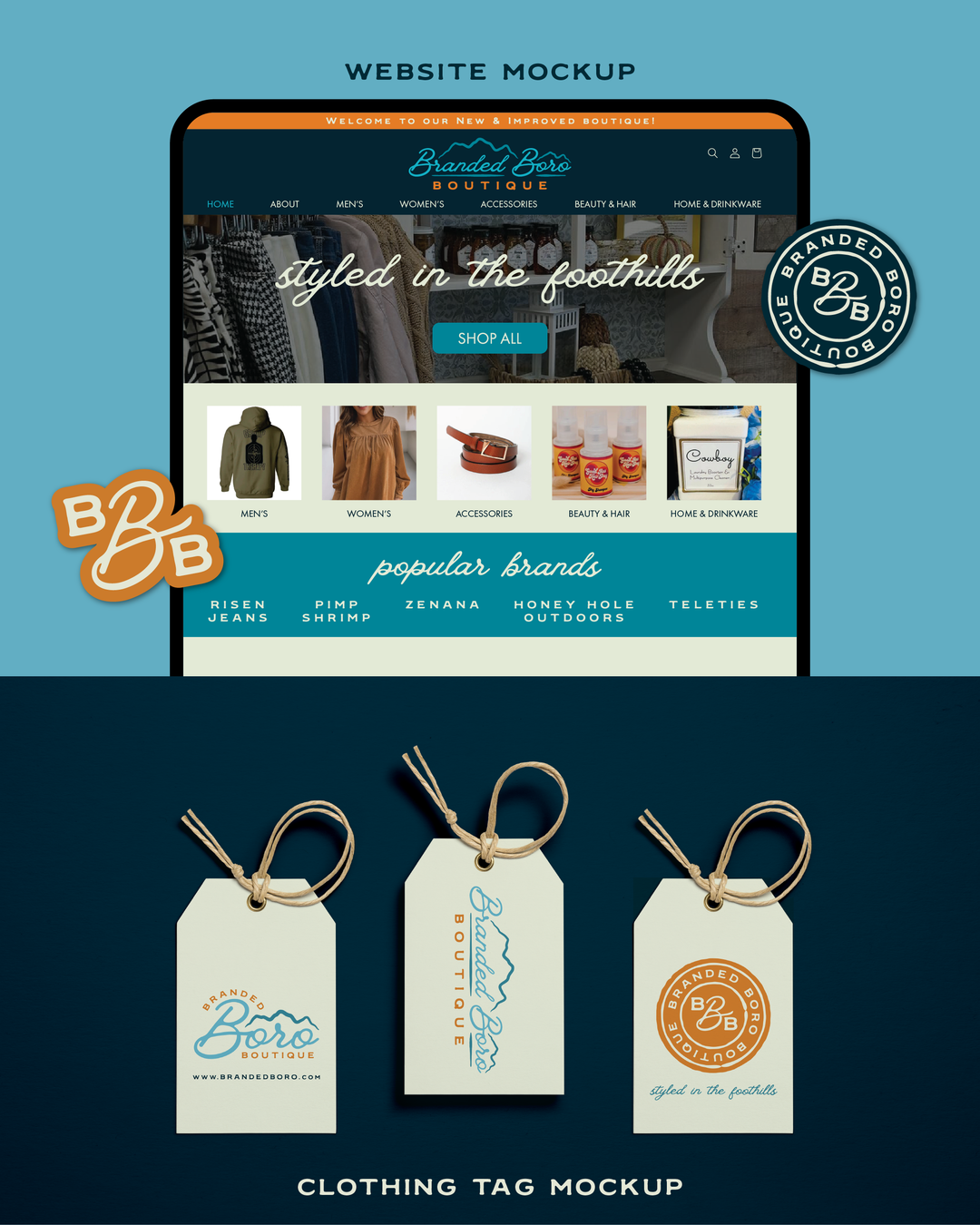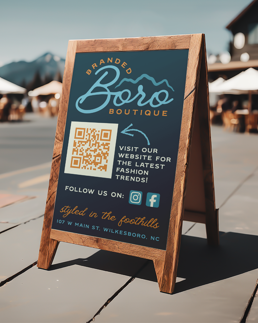Inspired by the natural beauty of the foothills of the Blue Ridge Mountains, the brand represents strength, unity, and resilience. Their slogan, "Styled in the Foothills," reflects this spirit, while an earthy color palette—featuring brown, shades of blues, and orange—captures the essence of the outdoors and the enduring character of the community.